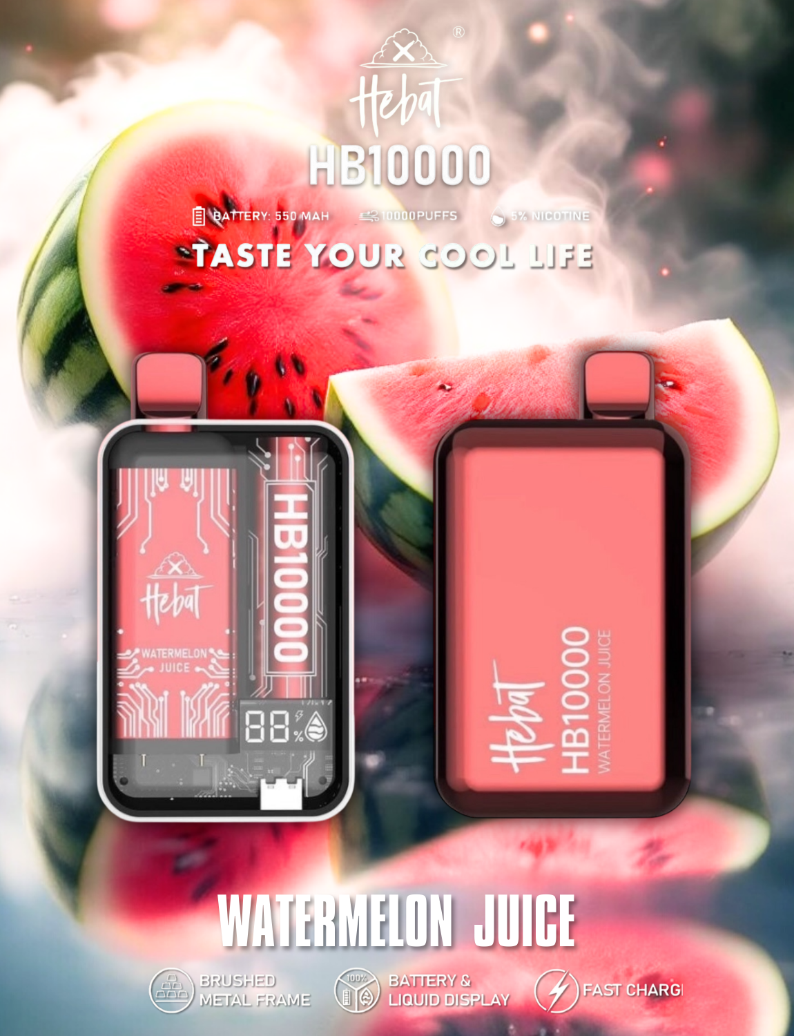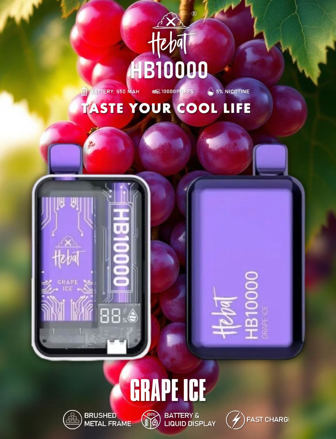HEBAT 喜貝10000口一次性電子煙全新升級,採用超大容量設計,為電子煙愛好者提供持久且濃郁的吸煙體驗。擁有可重複充電功能,結合便利與高效,讓您隨時隨地享受純正口感。